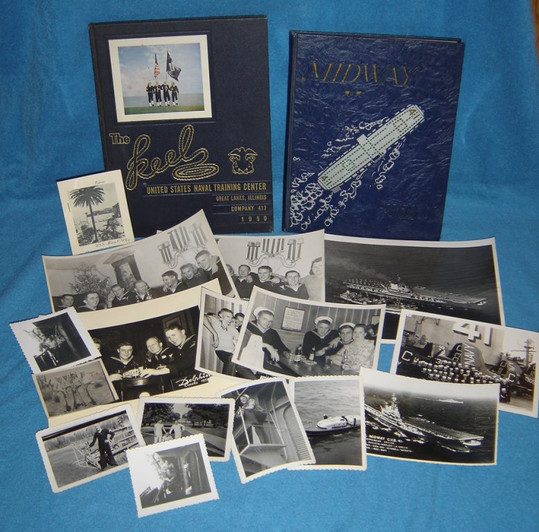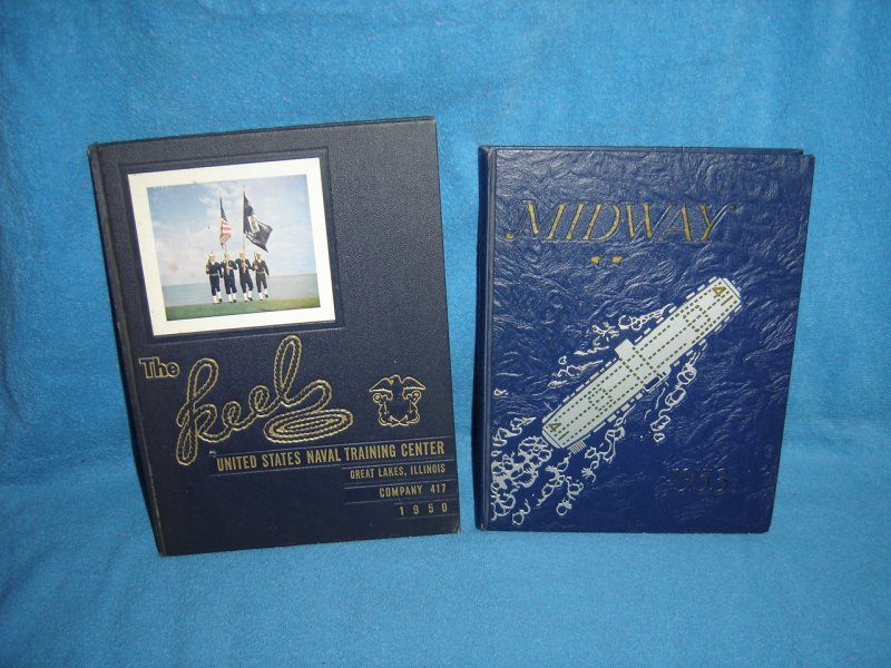 417 The Keel yearbook, a 1953 USS Midway cruise book, and
