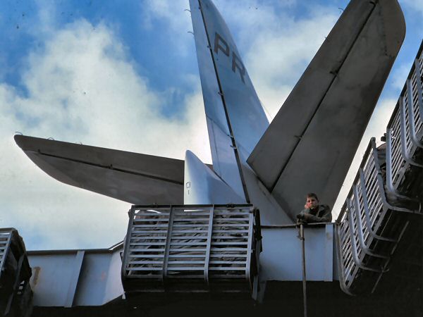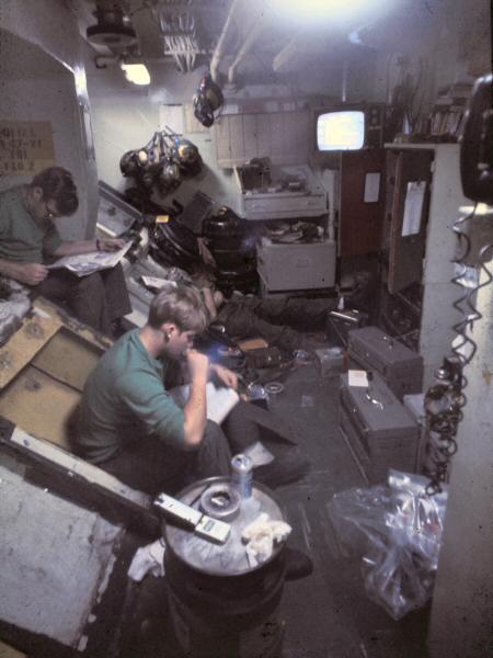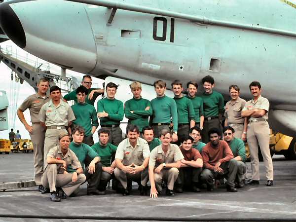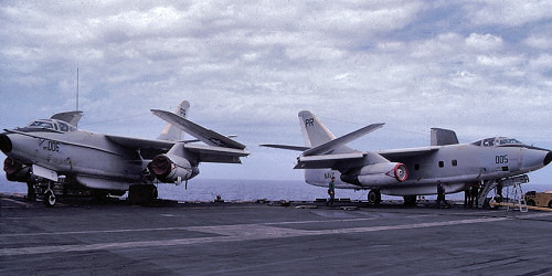 These photos were taken between September 1976 and September 1978 while Brian was aboard Midway with a VQ-1 detachment. The squadron was home ported out of Guam, but supplied EA-3Bs to all the carriers in West Pac. Because Midway was a smaller ship, she carried only one VQ-1 aircraft, while the larger deck carriers, such as Enterprise, etc. received detachments with two planes. Brian completed two six-month assignments with the Midway detachment. Whenever the ship left port for two weeks or more the squadron deployed with it. The Navy's official squadron history for VQ-1 can be found at: http://vq-1.ahf.nmci.navy.mil/index.htm. Brian doesn't remember if the squadron's nickname of World Watchers was in use during the time he was aboard the Midway, explaining that the air boss always called out, "Here comes Peter Rabbit!" when the EA-3B was coming in to land. This was their nickname because of the squadron's tail code of "PR."