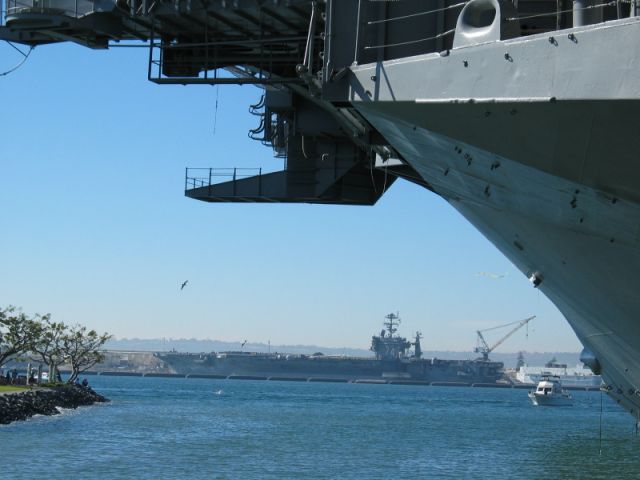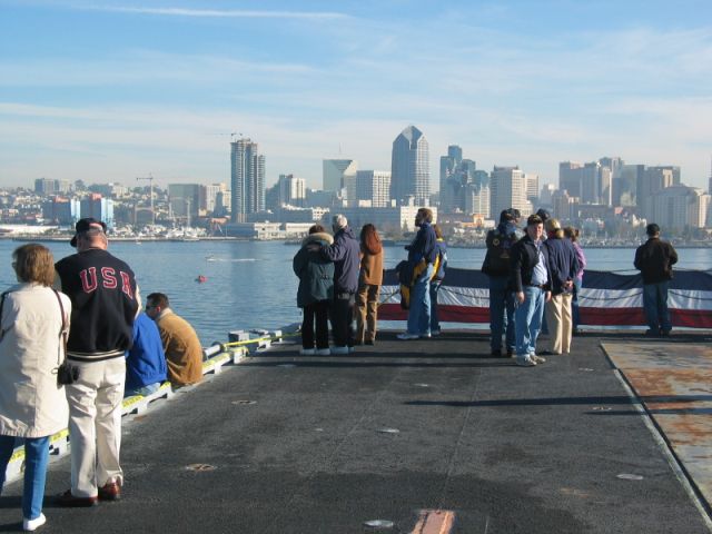 John Njaa is one of the Midway Hangar (aircraft restoration) volunteers & rode Midway across San Diego Bay with his wife. He was kind enough to share some of his photos with me & they are wonderful views of her last voyage. Of special note is the photo taken with Congressman & Navy Vietnam fighter ace Randy "Duke" Cunningham.
