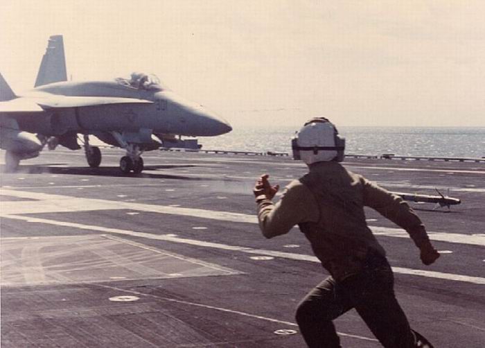 after falling off a VFA-192 F/A-18A Hornet landing aboard Midway.