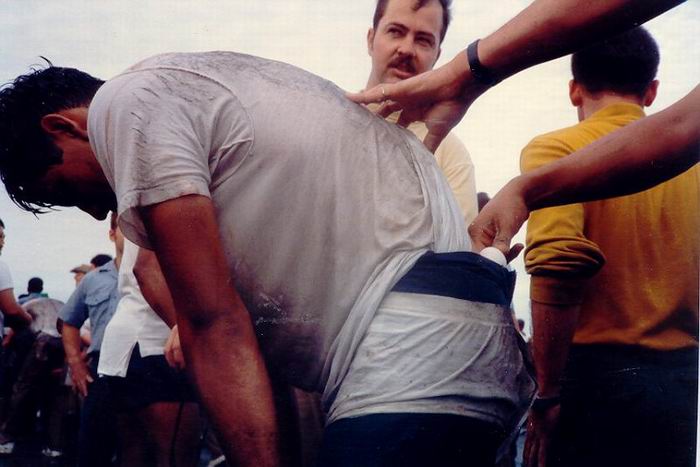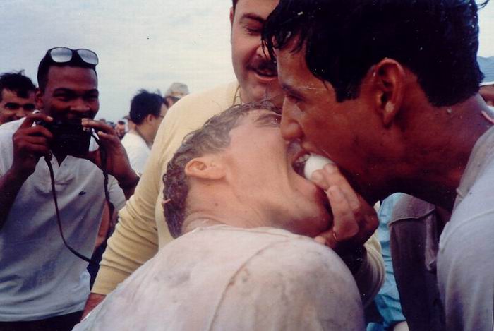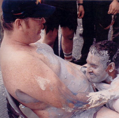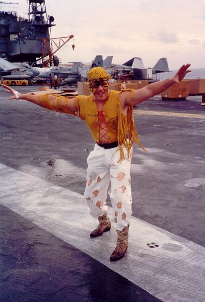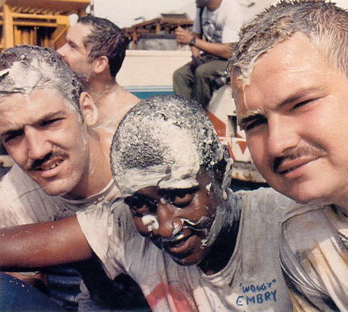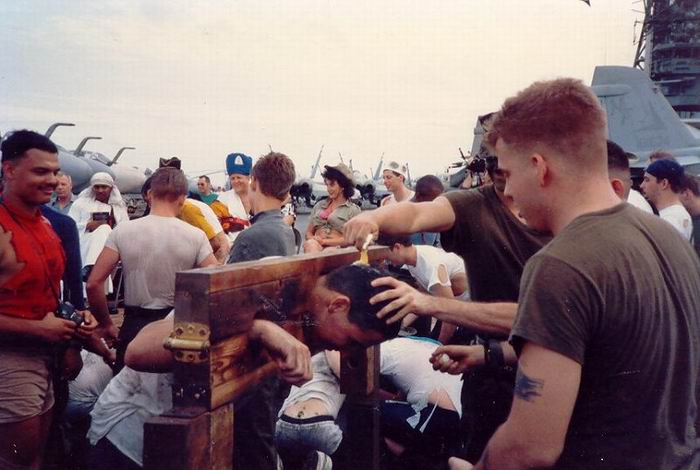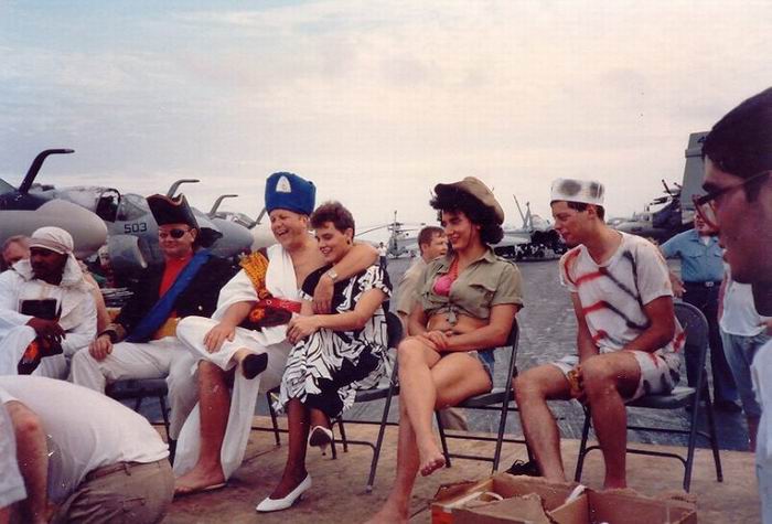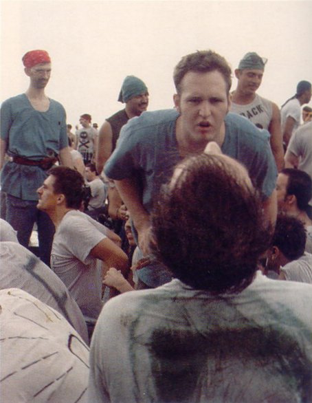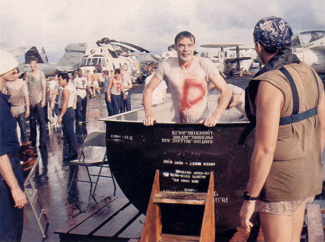 Approximately 2,250 slimy "Pollywogs" crossed the equator and into the realm of KING NEPTUNIS REX! Thus commenced the ceremonious line crossing tradition designed to ensure that each wog be anointed into His Royal Order. This practice which helps the pollywog get more in touch with his element was believed to have begun centuries ago with English seafarers and has since become a tradition recognized by many Naval organizations worldwide. Once the wog has seen his true status in the eyes of NEPTUNE, undergoes the cleansing of its slime and the rigorous tests set by TRUSTY SHELLBACKS, he will then be allowed to enter into the Ancient Order of Shellbacks. Details of this initiation however, shall remain a treasured secret among SHELLBACKS ... now and forevermore.