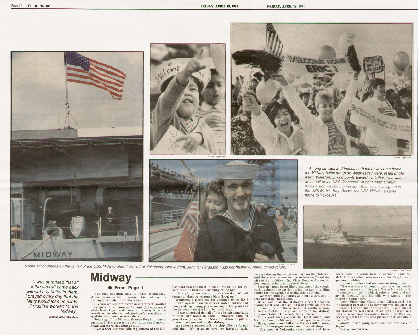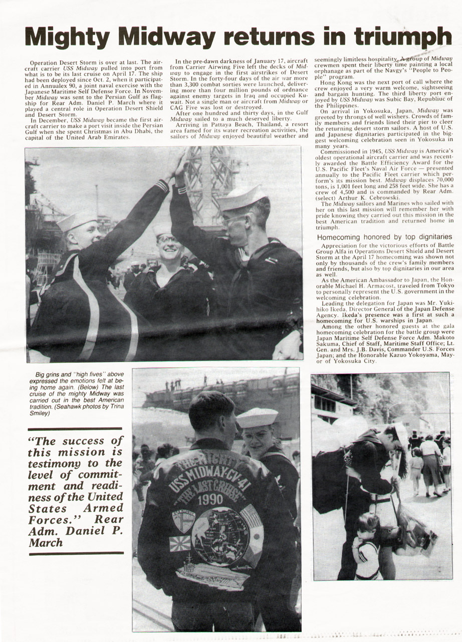 Newspaper Articles about Midway Returning to Japan After Operation