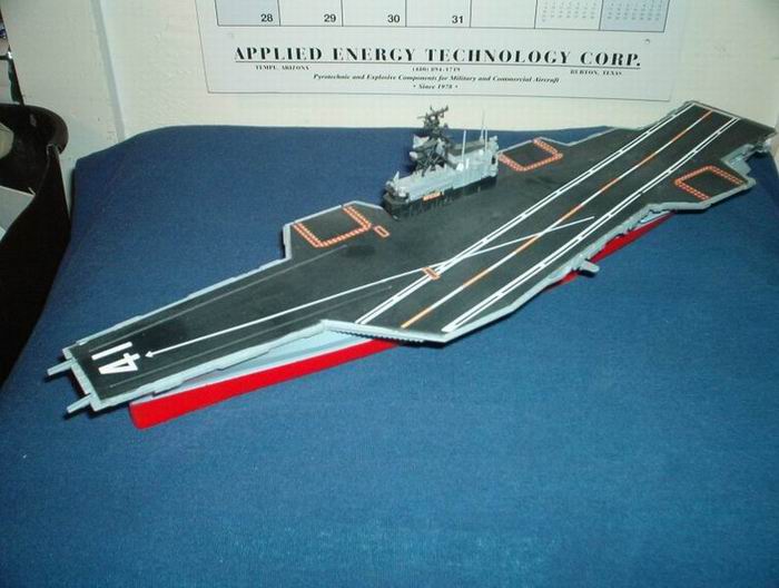 This is a conversion of Revell's 1/540 scale model, which Bill modified by adding an angled deck,