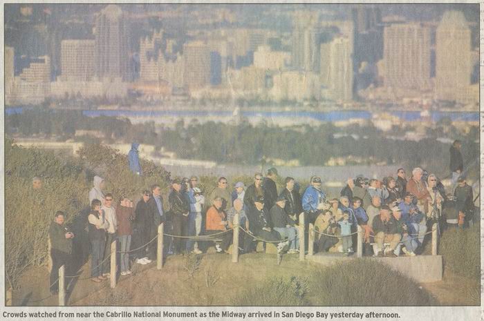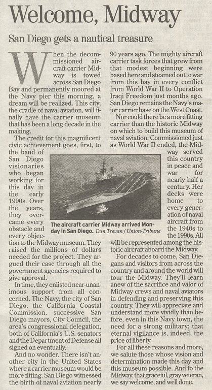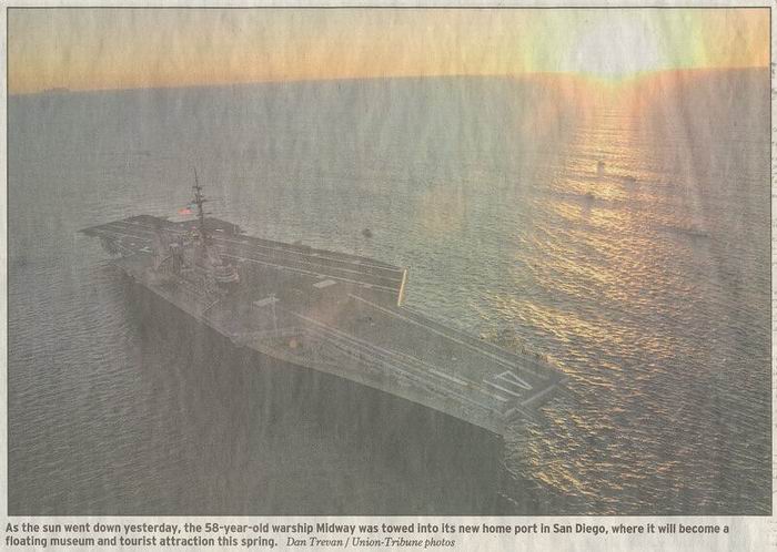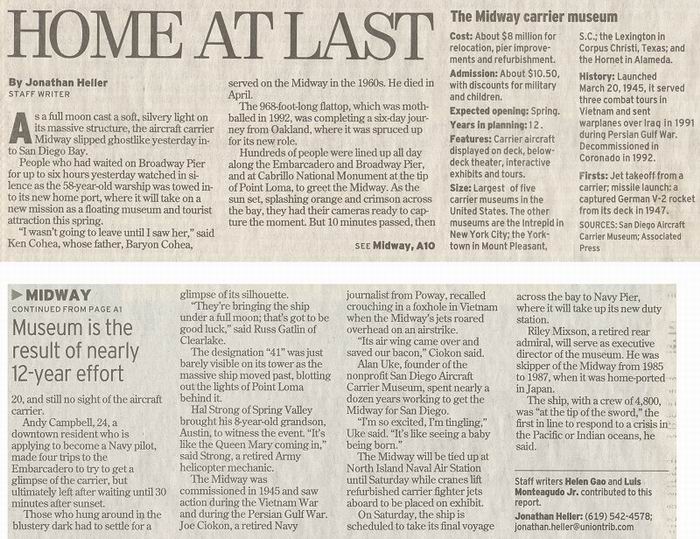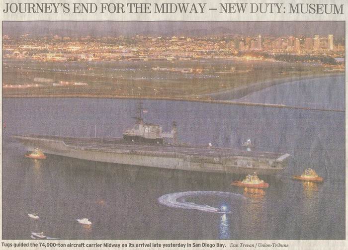 Union Tribune articles & photos about Midway arriving in San