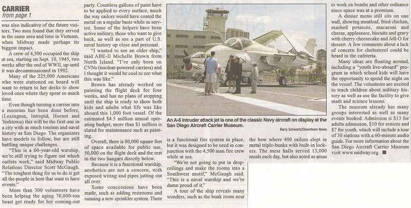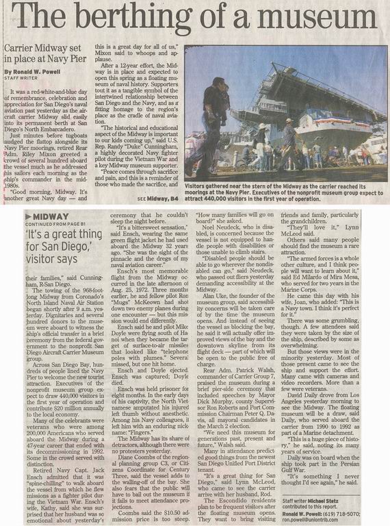 May 31, 2004 San Diego Union Tribune article about Midway opening as
