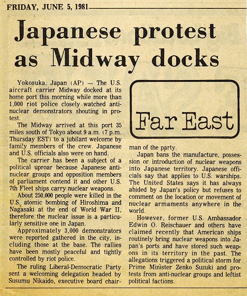 1991 Columbus Dispatch article about Midway leaving Yokosuka,