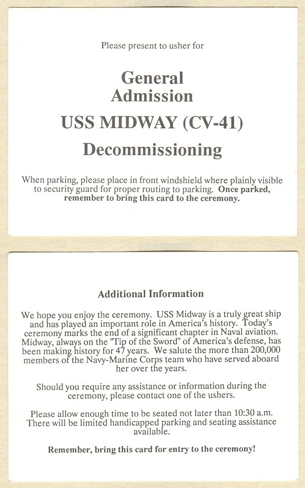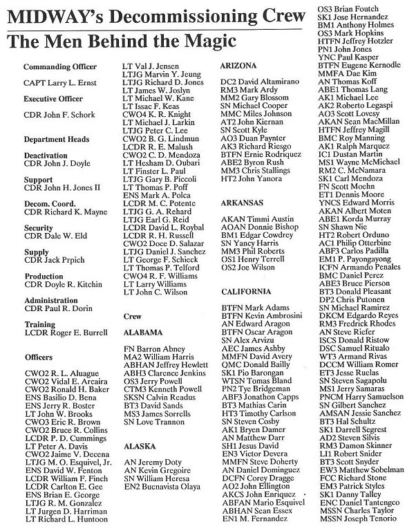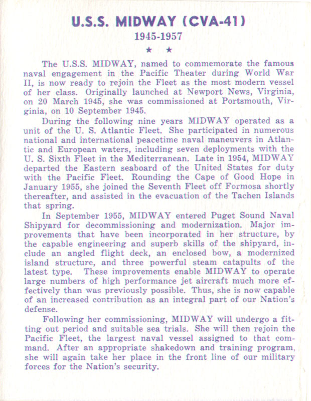 USS Midway Memorabilia Index