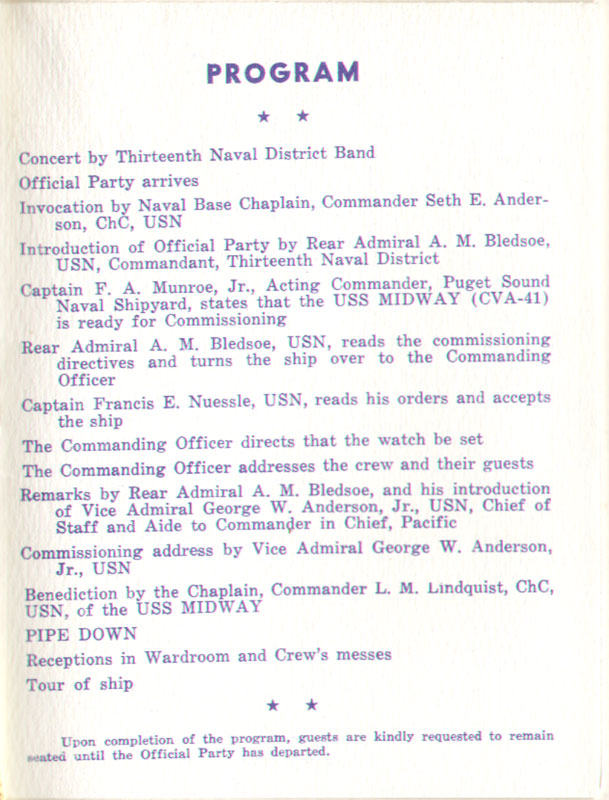 September 10, 1945 Commissioning