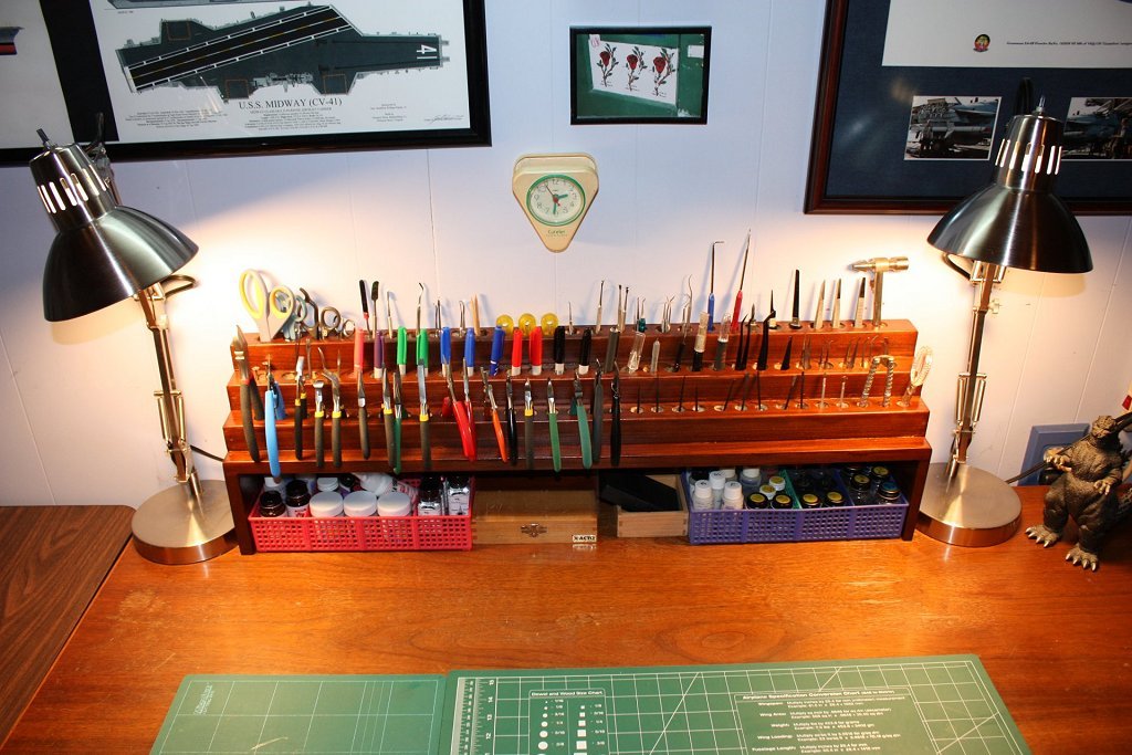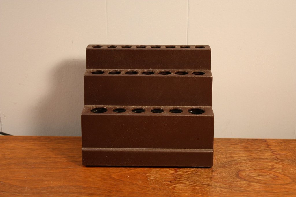 Take four small tool holders, expand & mount them on top of a wooden box that