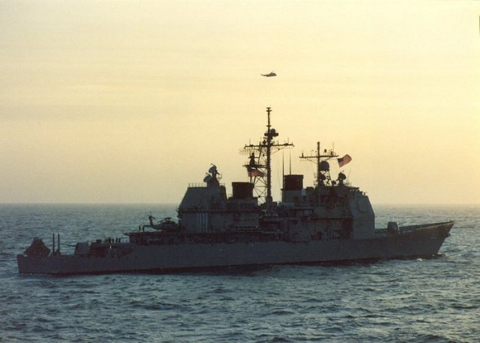 The Aegis guided missile cruiser USS