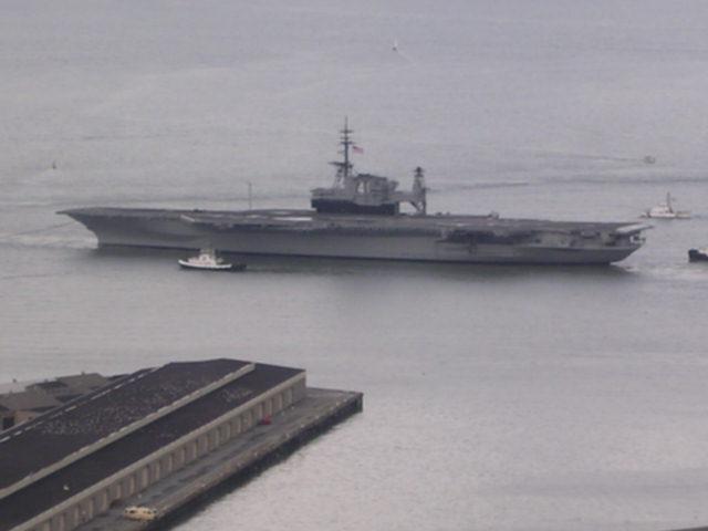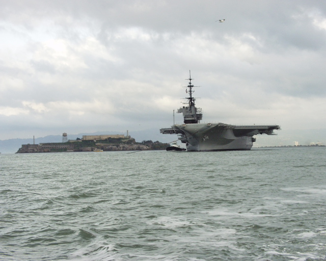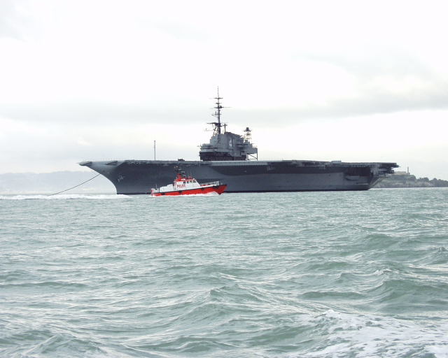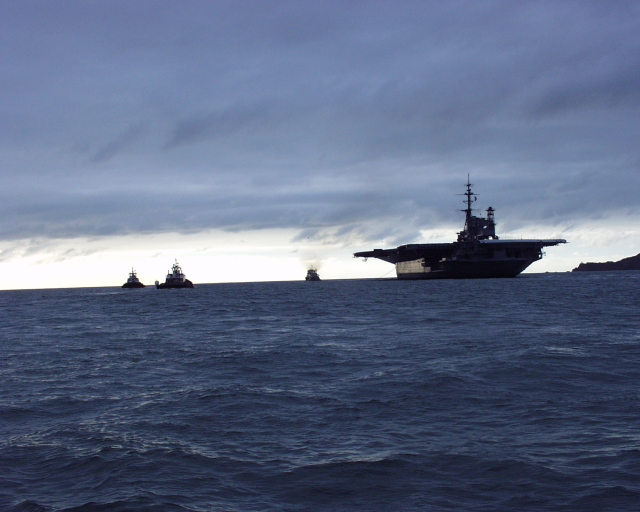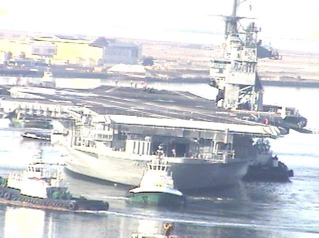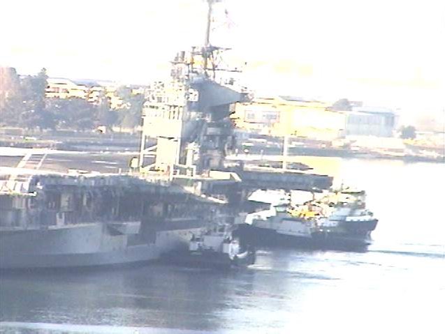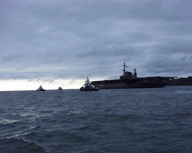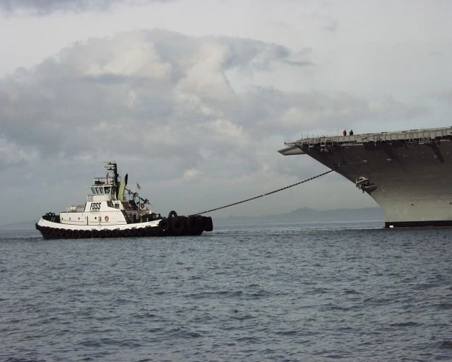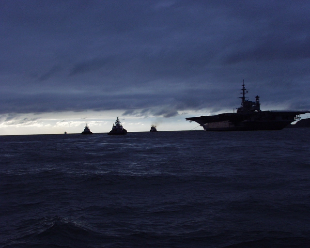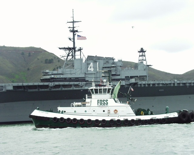 photos of Midway being towed by the ocean-going tug Corbin Foss.